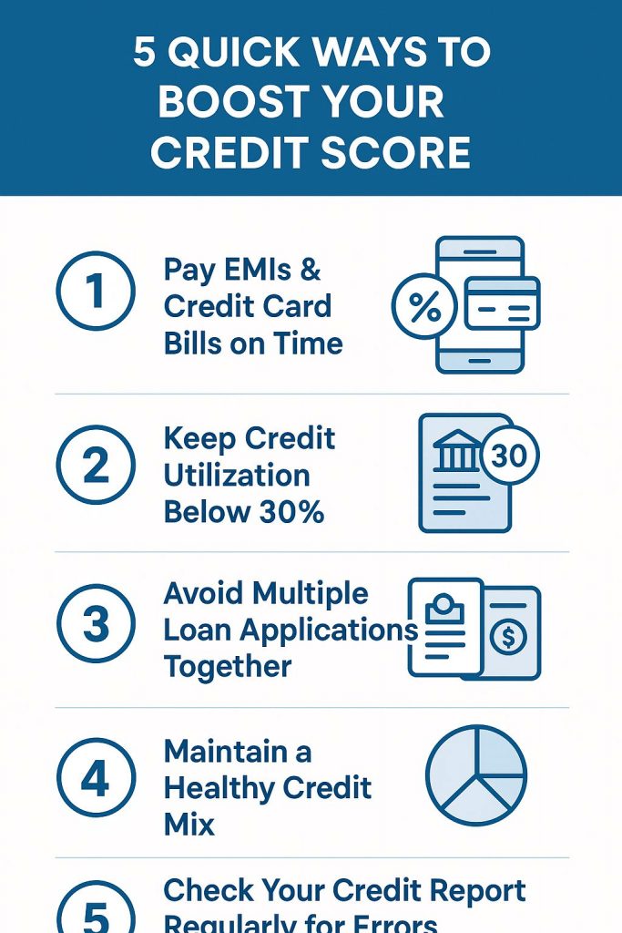 Number of Inquiries – Too many loan/credit card applications in a short time reduce your score.